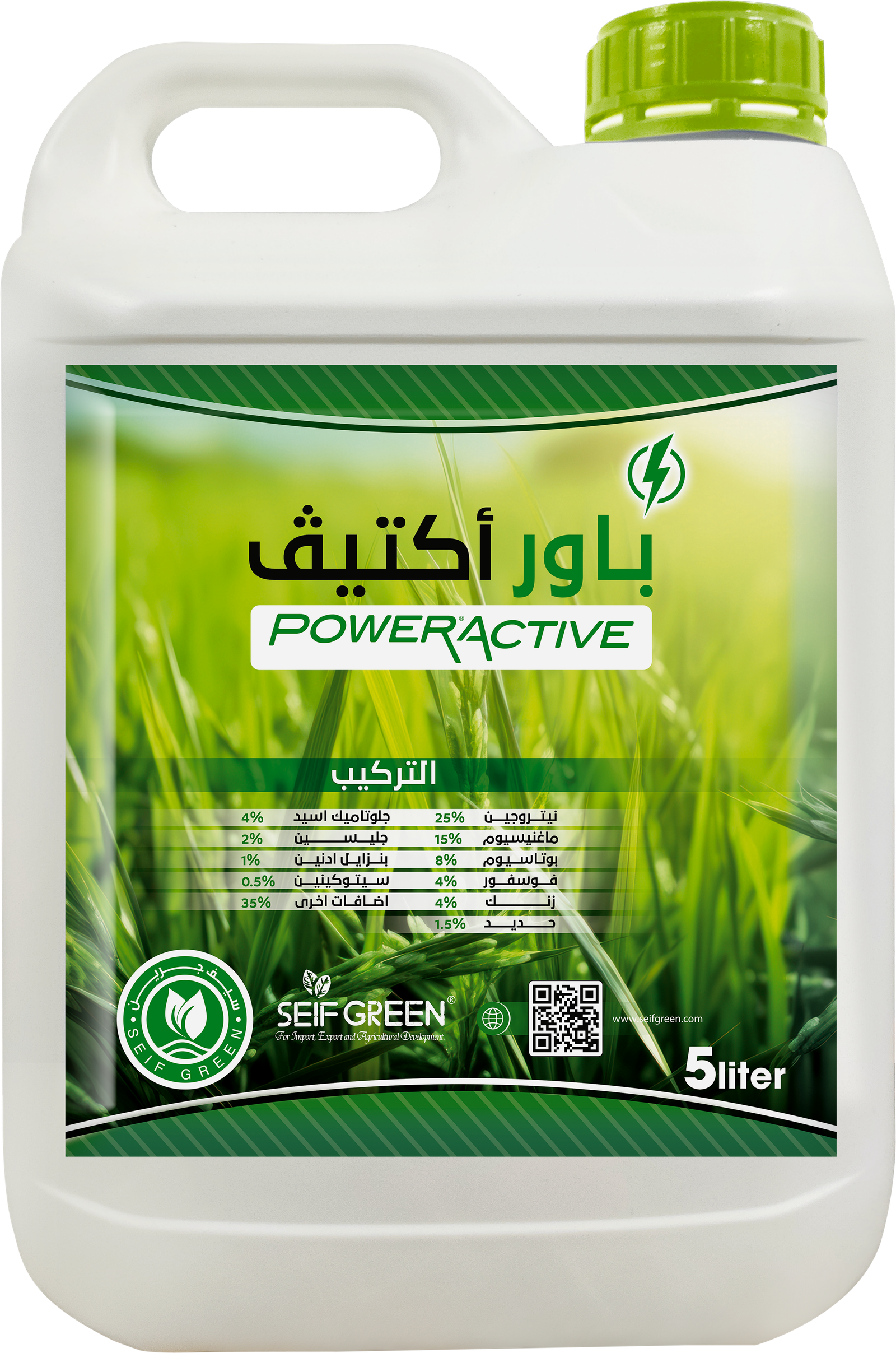 باور أكتيف ☘️ : سماد سائل مركب من العناصر الكبرى والصغرى والاحماض الامينية وسيتوكينينات لتزويد وتنشيط النمو الخضري للنباتات المختلفة.